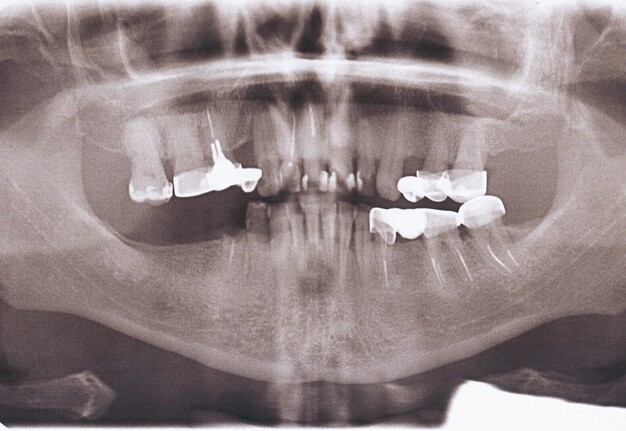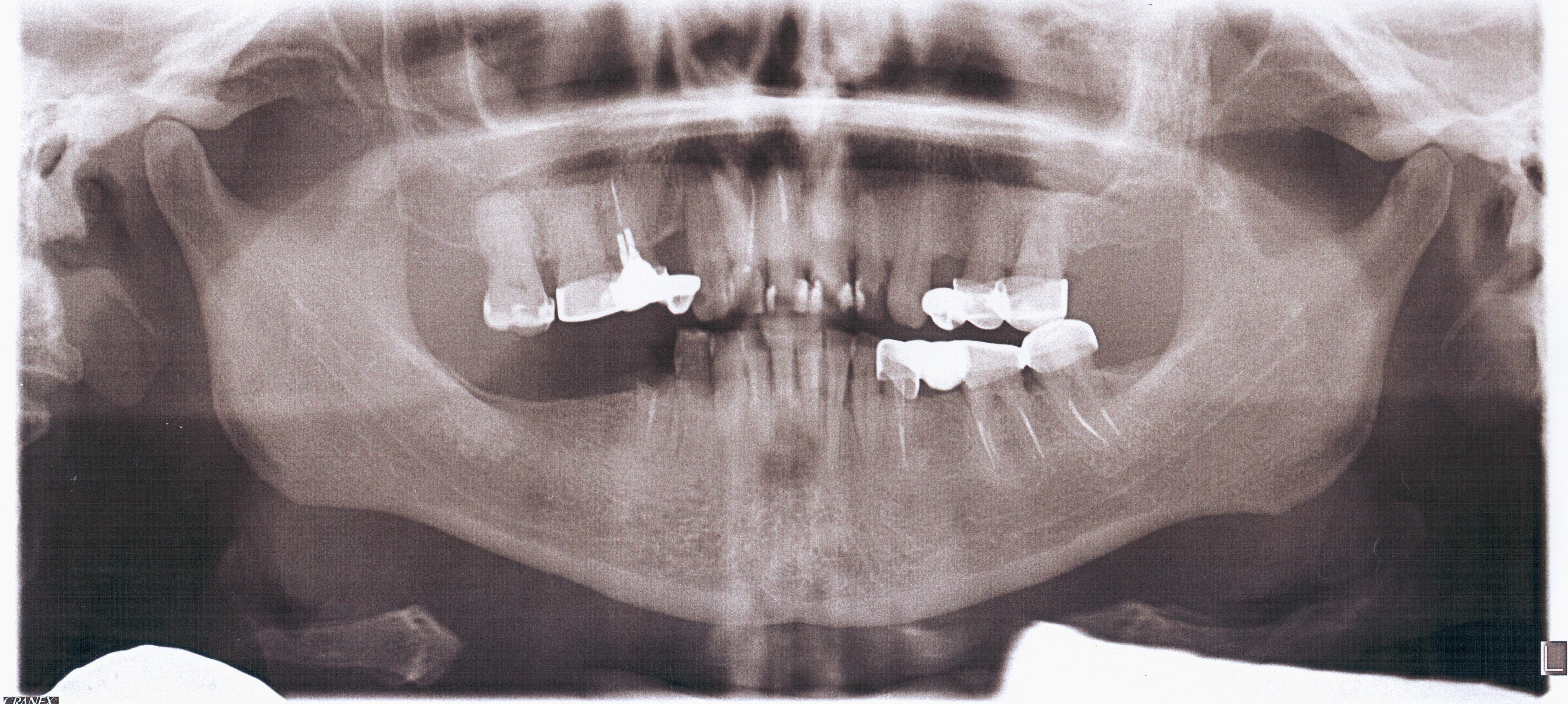Orthopantomography (Fig 2) showed a minor area of alveolar ridge resorption in the area between the lower left lateral incisor and canine.