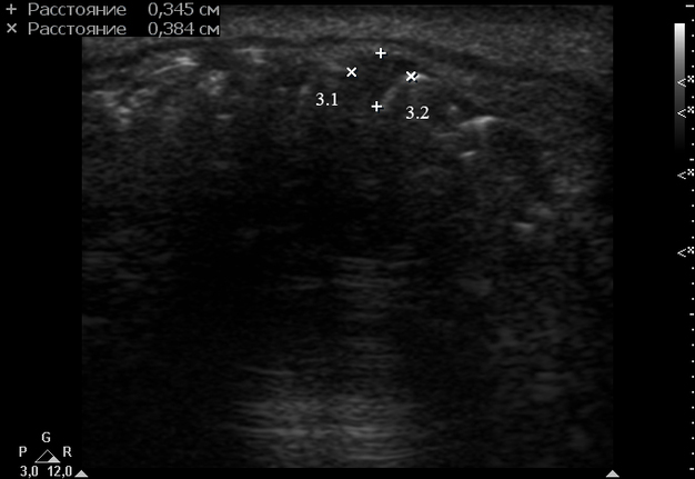 One of the important points in obtaining high-quality informative sonograms when using a linear probe is the proximity of the target diagnostic area (area with a pathological focus) to the surface of the probe [40]. Since with a remote localization of the pathology area, the diagnostic ability decreases due to the likelihood of the presence of anatomical objects/foreign bodies that can produce artifacts and due to the technical limitations of the ultrasound probe itself. That is, ideally, the area with pathology should be located at a depth of 0 to 3.0-6.0 cm relative to the footstep of the transducer.