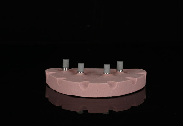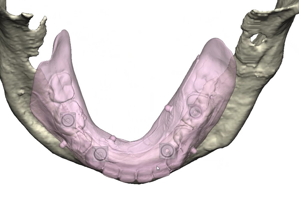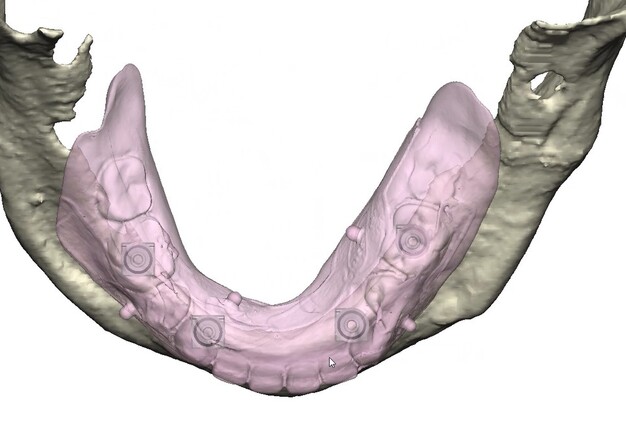 Records for this patient were collected using a dual-scan CBCT and intraoral scanning. A surgical planning session was completed with KLS Martin for the fabrication of a CAD-CAM subperiosteal implant system with immediate loading of a mandibular prototype (Figs 2-5).