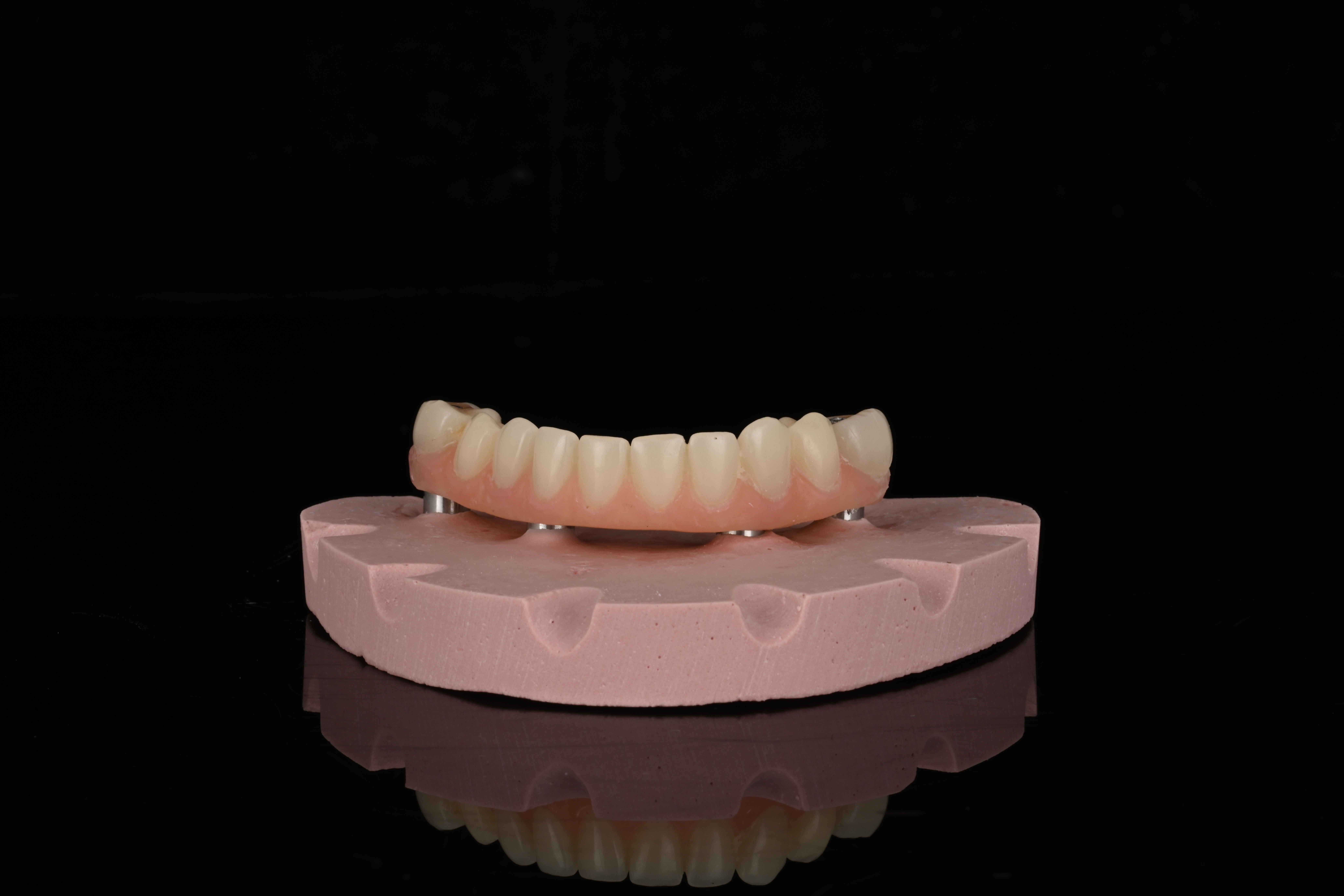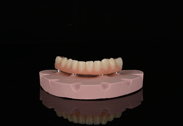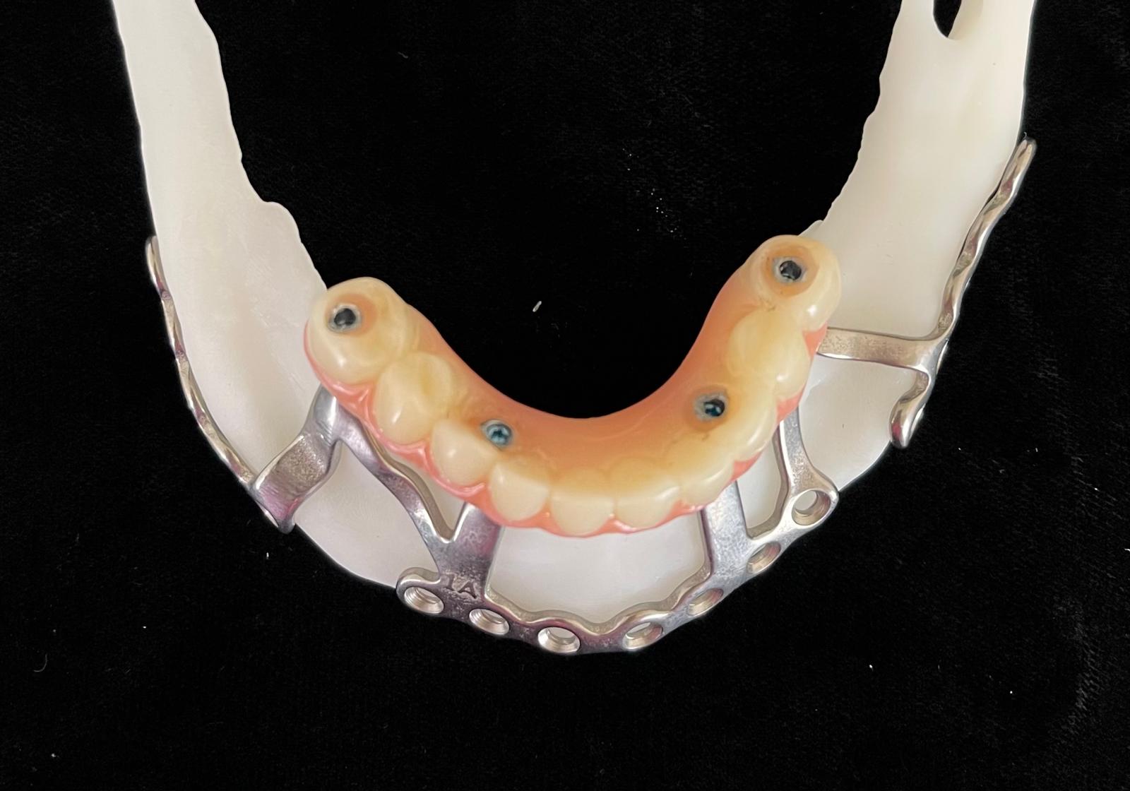 The custom titanium framework was trial seated and adapted accurately.