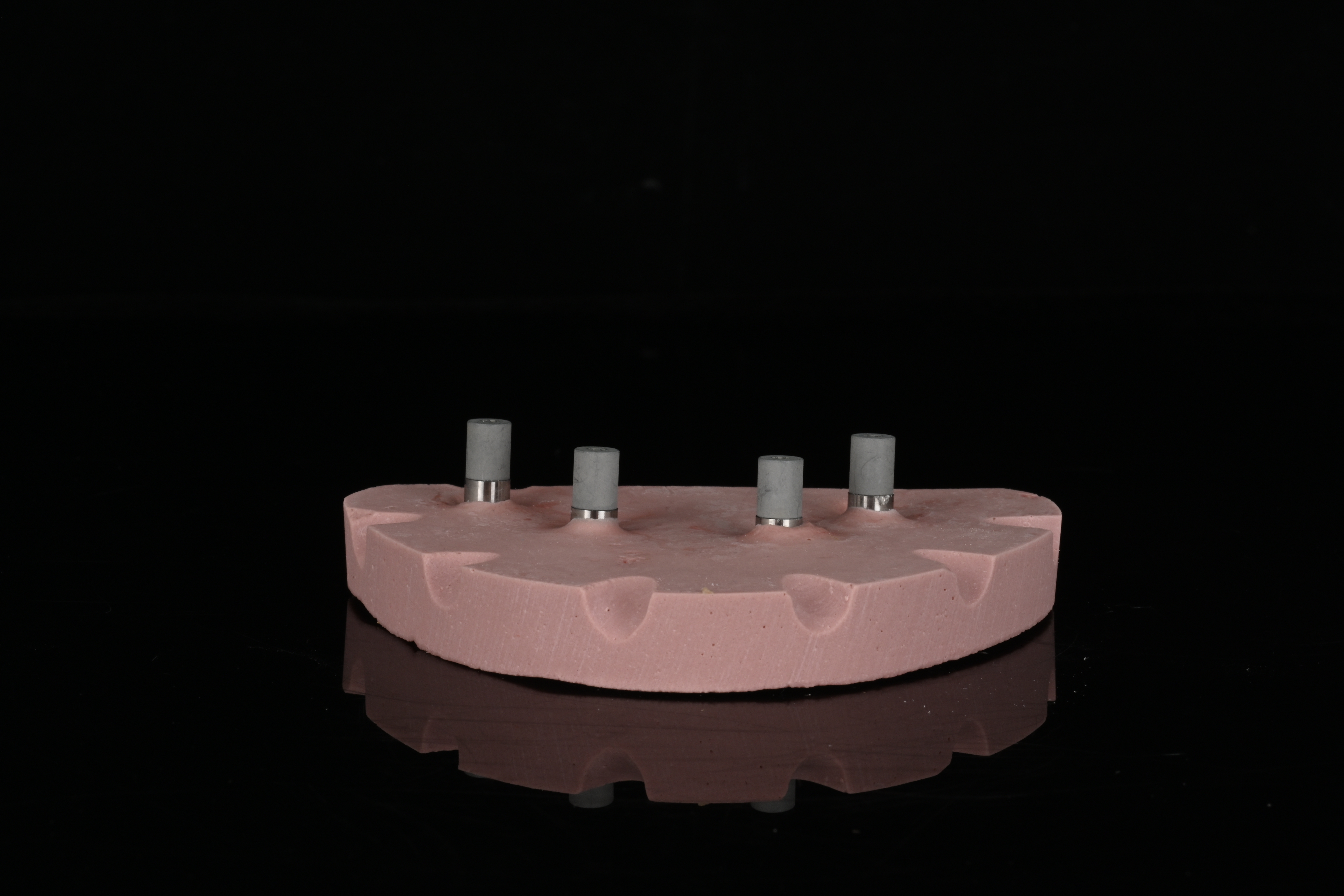 Analogs were attached to the prototype, and a back-pour cast was fabricated using Type IV Silky-Rock dental stone (Whip Mix). Reference notches were added to aid in digitization (Fig 12).