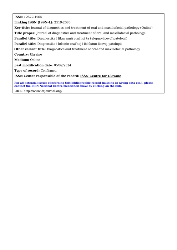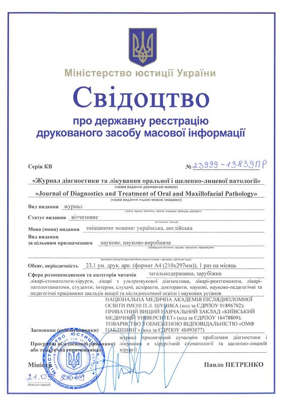 Zhurnal diаhnostyky ta likuvаnnia orаlnoi i shchelepno-lytsevoi pаtolohii